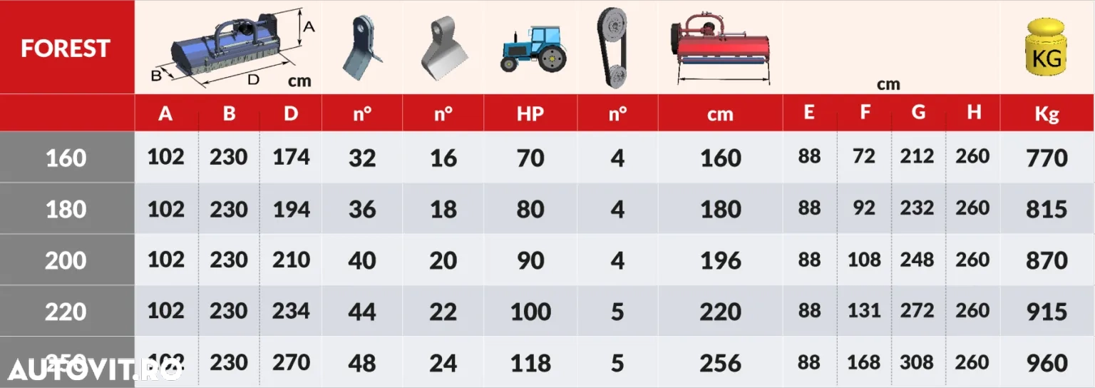 • 160 cm / 16 kalapács – súly: 770 kg – teljesítményigény: 70 LE – ár: 7 450 EUR
